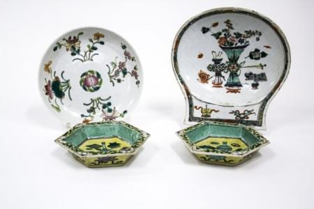 De formes diverses, à décor famille verte de fleurs, D de 12 à 1...