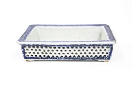 Porcelaine bleu blanc à motifs en nid d'abeille ajourés, 11x17 c...