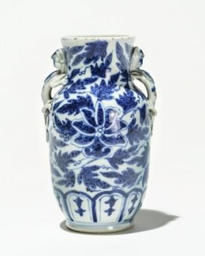 Porcelaine émaillée bleu blanc à décor de feuilles, H 13,5 cm