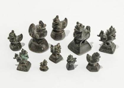 3490. Suite de onze poids en forme d'animaux, Asie du Sud-Est, XIXe s