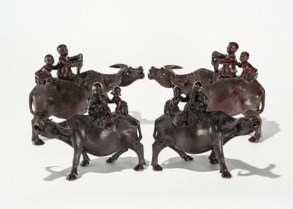 3498. Groupe de quatre buffles d'eau, Asie du Sud Est, fin XIXe s
