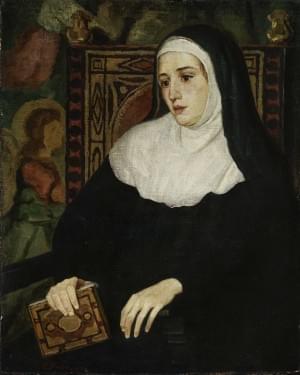 Religieuse, huile sur toile marouflée, signature non identifiée,...