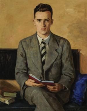 Portrait de jeune homme au livre, huile sur toile, signé et daté...