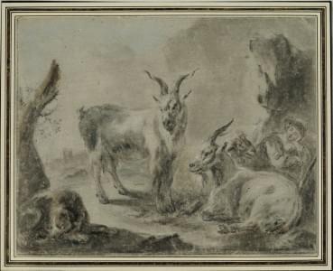 Chèvres et berger, pastel et fusain, 20x24 cm