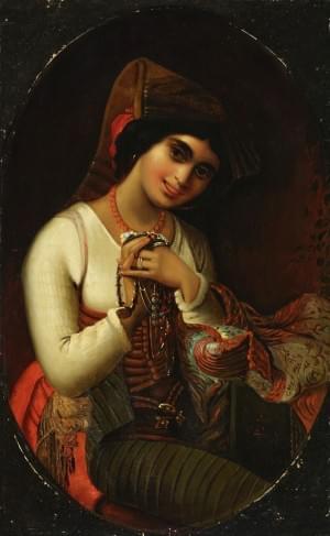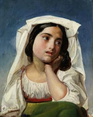 Jeune fille napolitaine, huile sur toile ovale, 99x62 cm
