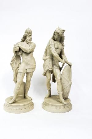 Deux chefs gaulois, plâtre peint, H 58 cm. Provenance: Château...