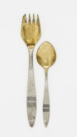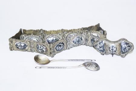3652. Ceinture à décor de médaillons niellés et 2 cuillères