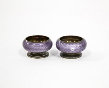 3677. Suite de 9 salerons monogrammés de différents chiffres
