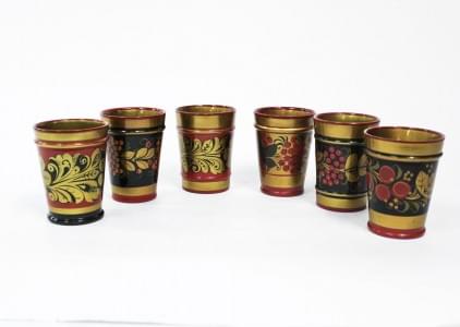 Carton bouilli laqué à décor traditionnel russe, H 11 cm