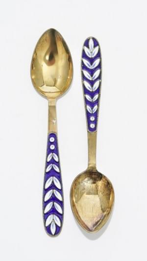 3672. 12 cuillères à thé et deux cuillères à feuille de thé
