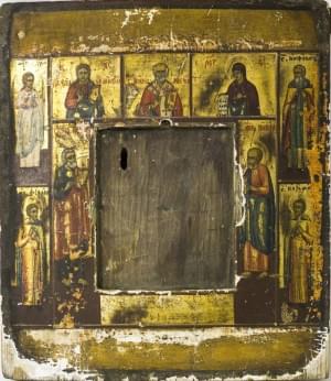 Icone russe sur panneau, manque la partie centrale en bronze, 26...