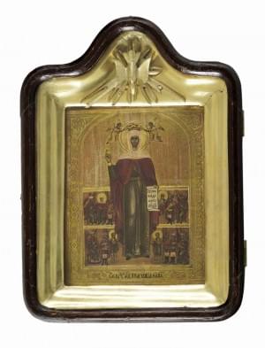 Icône russe, tempera sur panneau dans un Kiot, XIXe s, 18x15 cm