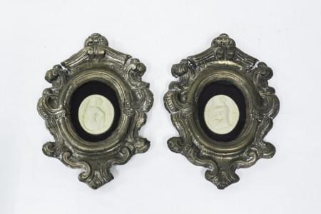 Nus féminins, paire de médaillons en bas-relief, ivoire, 7,5x6,5...
