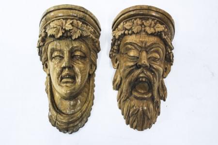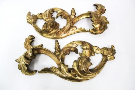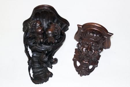 L'une à décor de grotesque, l'autre de chérubins, bois sculpté,...