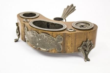 Bois gainé de cuir à décor frappé, fer forgé, 9x20x13 cm. Prove...