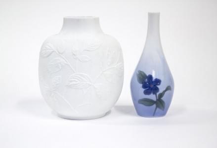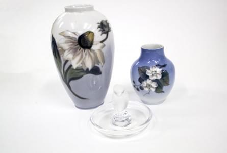 Royal Copenhague et Lalique, porcelaine et verre, H 18 à 7 cm. P...