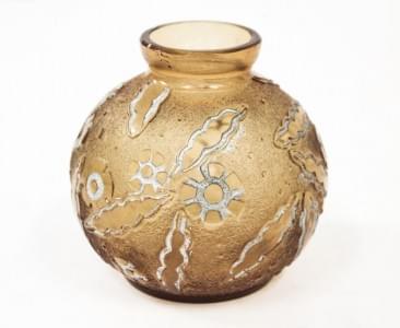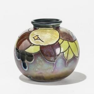 Petit vase, céramique émaillée polychrome et irisée à décor de f...