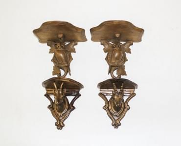 3825. Quatre petite consoles d'applique chamois et chouette, Brienz