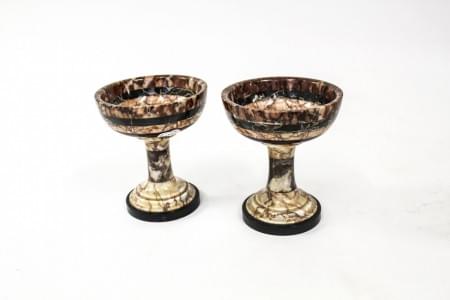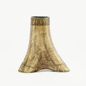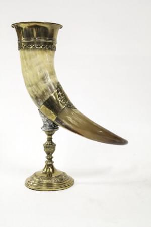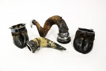 3866. Deux sabots et deux cornes montés en argent et laiton