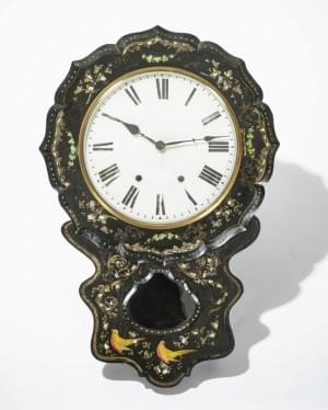 Carton bouilli peint, doré et incrusté de nacre à décor de fleur...