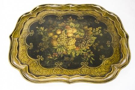 Carton bouilli et peint à décor de fruits, 80x62 cm