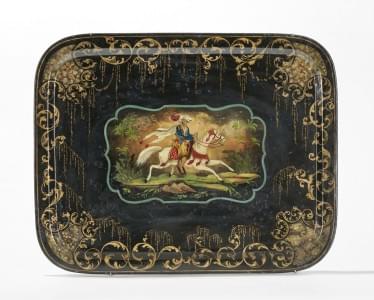 Tôle peinte et dorée à décor d'un cavalier turc, 58x72 cm