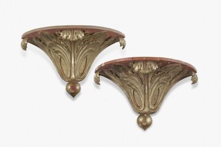 Bois scultpé doré et peint corail, 30x51x20 cm. Provenance: Chât...