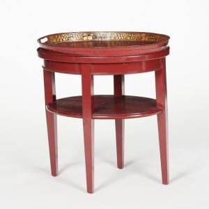 3855. Plateau ovale laqué rouge à décor doré de pampres de vigne