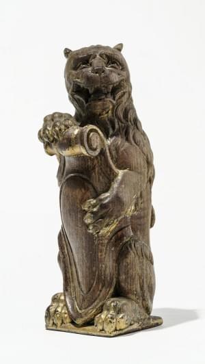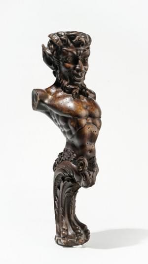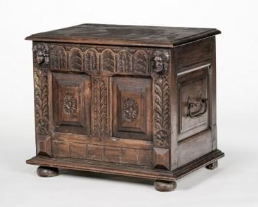 Noyer sculpté, 64x72x49 cm. Provenance: Château fribourgeois