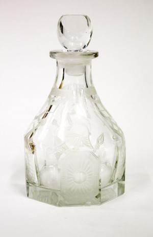 Cristal jaune à décor gravé d'une ville et de pampres de vigne,...