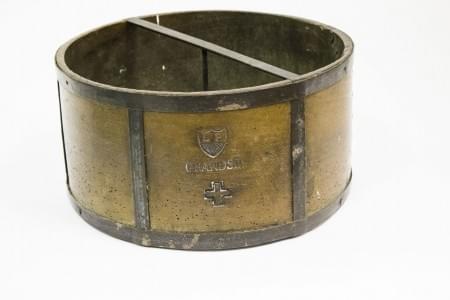 Tôle et piètement en bois, 64x60x47 cm. Provenance: Château frib...
