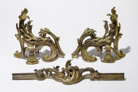 Formées de cors de chasse réunis par un ruban, bronze doré, H 41...