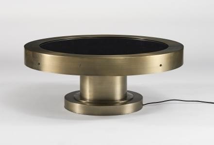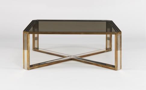 Métal chromé et doré, verre fumé, 38x97x97 cm