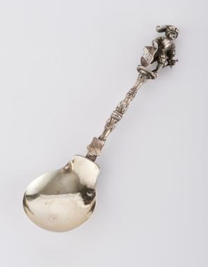 472. Cuillère de baptême à manche lansquenet portant un bouclier aux...
