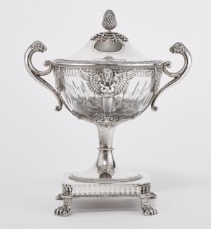 486. Sucrier néoclassique, frétel bouquetin, armorié Watteville