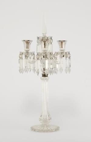 498. Candélabre à trois bras de lumière sommé d'un pinacle et orné de...