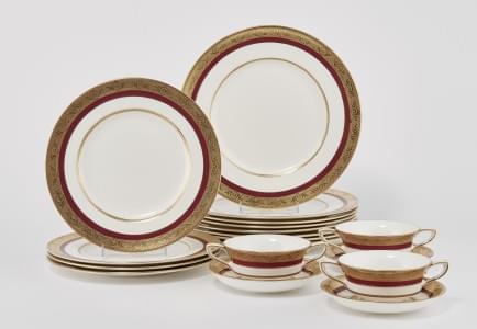 Worcester, bone china, comprenant: 12 assiettes à dîner, 12 à en...