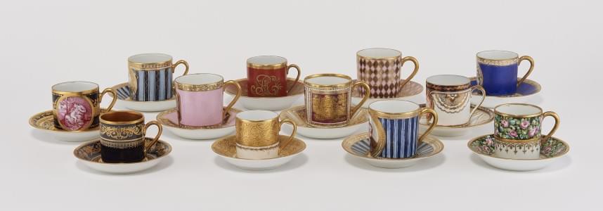 526. Ensemble de 12 tasses à café à décor peint dans le goût du XVIII...