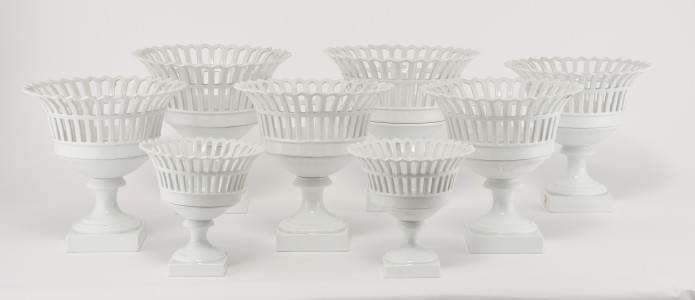 538. Centre de table formé de 8 coupes rondes ajourées sur piédouche...