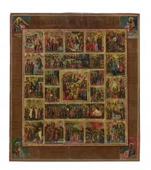 Russie, icône en 28 scènes, tempera sur panneau, 35x31 cm