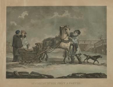 Isvoschtschik au repos et Isvoschtschik prêt à partir, deux grav...