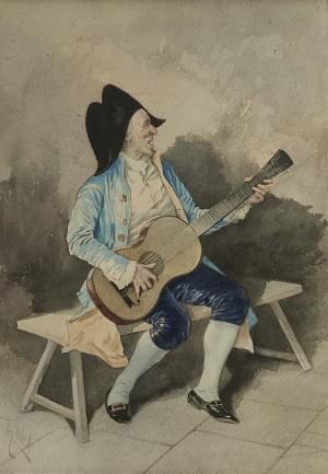 Le guitariste, aquarelle sur papier, signée, 36x25 cm