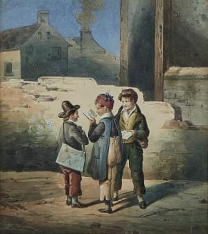 Enfants des rues, aquarelle sur papier, signée, 14,5x13 cm