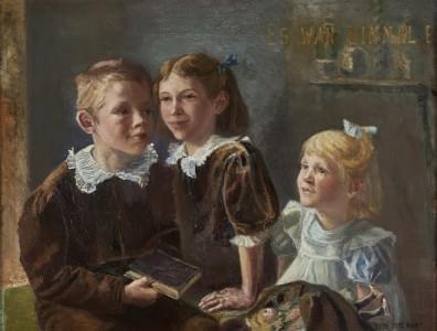 Es war einmal, portrait de trois enfants, huile sur toile, signé...