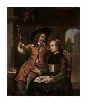 Scène galante, huile sur cuivre, 25x21 cm