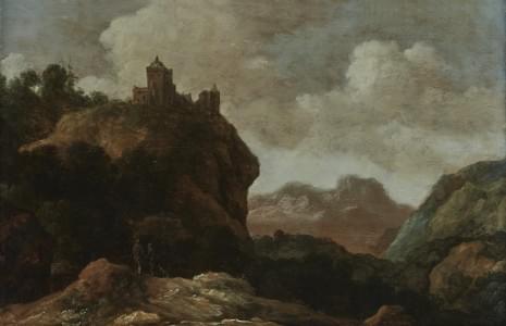 Château dans un paysage, huile sur toile, signée, 49x65 cm