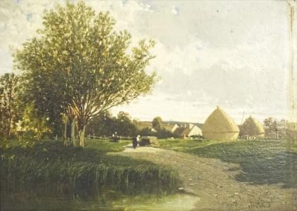 Les meules de foin, huile sur panneau, 22x32 cm