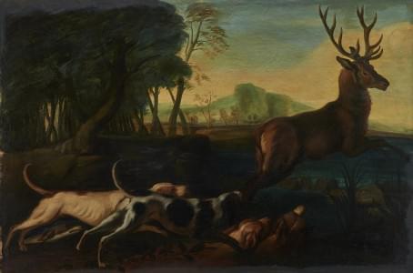 Scène de chasse, huile sur toile, 68x103 cm