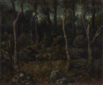 Cerf en sous-bois, huile sur toile, porte une signature Courbet...