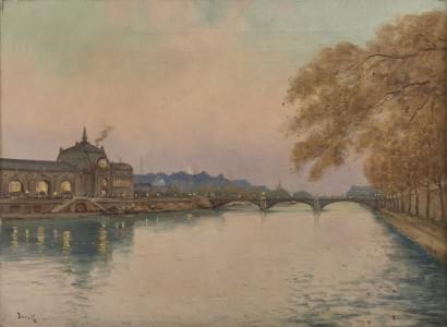 Paris vue de la Seine, huile sur toile, signée, 60x80 cm